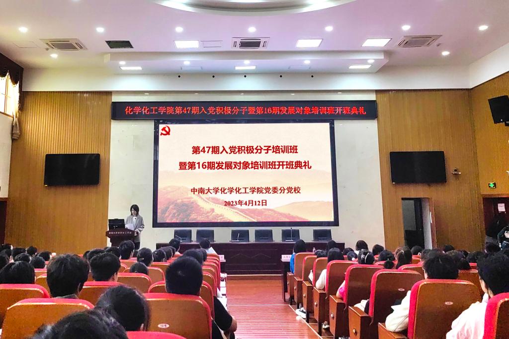 2023年4月12日下午,伟德victor1946官网登录党委分党校第47期入党积极分子培训班暨第16期发展对象培训班开班典礼在新校区化学楼133报告厅举行。伟德victor1946官网登录党委书记、分党校董事长刘有才出席并致辞,伟德victor1946官网登录党委组织员、分党校办公室主任汪菁垚、第16期发展对象培训班班导师胡雨琪、第47期入党积极分子培训班班导师肖茜斤、本科生应化第二党支部书记赵元超、本科生制药党支部书记谭澳利以及培训班全体学员参加开班典礼。开班典礼由肖茜斤主持。