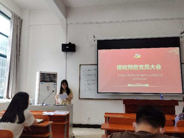 而后,召开了接收预备党员大会,讨论和表决接收发展对象师凯丽同志为中共预备党员的问题。师凯丽同志对自己的入党动机、个人经历、自身不足等方面的进行总结与阐述,与会党员对她进行提问。根据无记名投票表决结果,大会一致同意接收师凯丽同志为中共预备党员,党龄自2023年5月26日起算。