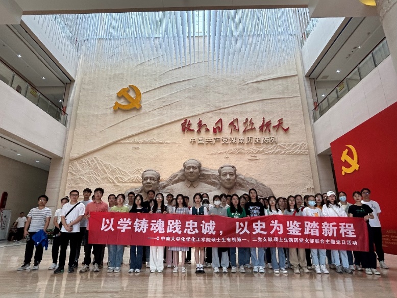 为深入学习贯彻习近平新时代中国特色社会主义思想,教育引导党员学思想、见行动。6月3日,伟德victor1946官网登录党委组织硕士生有机第一、第二党支部与硕士生制药党支部在湖南党史陈列馆、雷锋纪念馆共同开展“以学铸魂践忠诚,以史为鉴踏新程”主题教育实践研学暨联合主题党日活动。