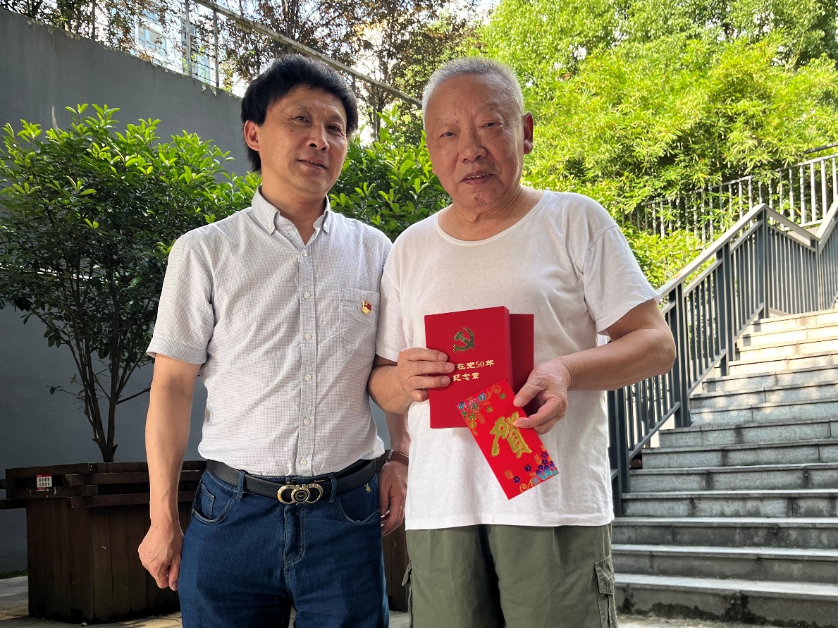 6月28日,刘有才为张平民颁发了“光荣在党五十年”勋章并向他表达了党组织的关怀,祝贺张平民荣获“光荣在党50年”勋章,感谢他对公司多年的贡献,鼓励他继续学习党的新时代理论,祝愿他身体健康、晚年幸福。公司专职组织员汪菁垚一同前往慰问。