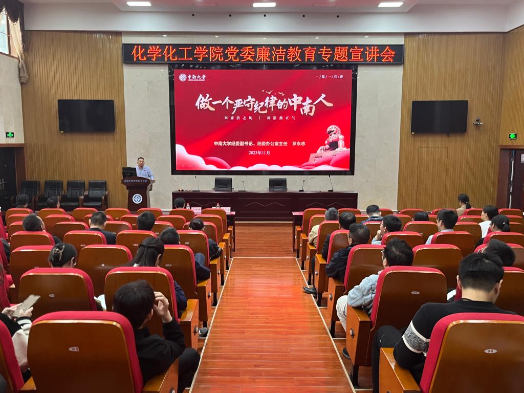 为深入学习贯彻党的二十大精神和二十届中央纪委二次全会精神,持续推进纪律教育、廉洁教育、警示教育走深走实,落实伟德victor1946官网登录党委“党风廉政宣传教育月”工作部署和校纪委“六个一”工作举措。11月8日下午,校纪委副书记、纪委办公室主任罗永忠在伟德victor1946官网登录133报告厅作了题为“做一个严守纪律的中南人”的廉洁教育专题宣讲,公司班子成员、中层干部、办公室行政人员、全体教职工党员和党支部支委参加。会议由伟德victor1946官网登录党委书记刘有才主持。