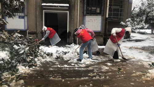 各位党员和志愿者们拿起铲子和扫把,铲除社区路上的积雪,清理断枝和树叶。在他们的努力下,宽阔的道路重新展现在人们的眼前,云麓园社区的人们得以顺利出行。