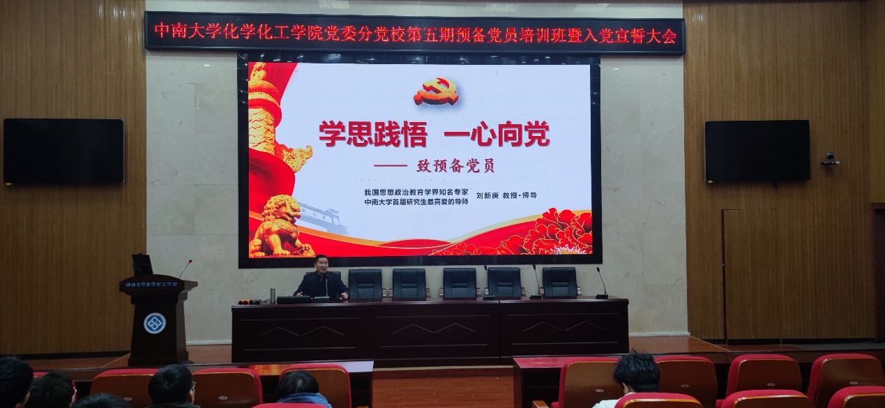 会后,预备党员集体观看《榜样7》,刘新庚教授为预备党员讲授了专题党课《学思践悟一心向党》。