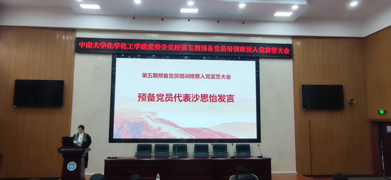 大会开始,所有参会成员共唱《国际歌》,随后胡雨琪宣读新接收的39名预备党员名单。宣读完名单后由汪菁垚领誓,全体预备党员面向党旗进行入党宣誓。