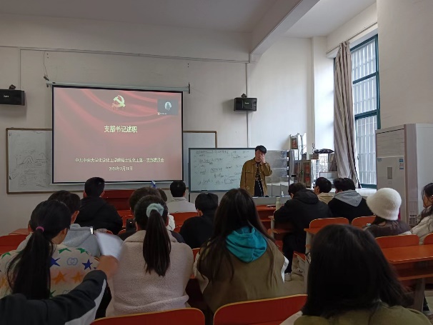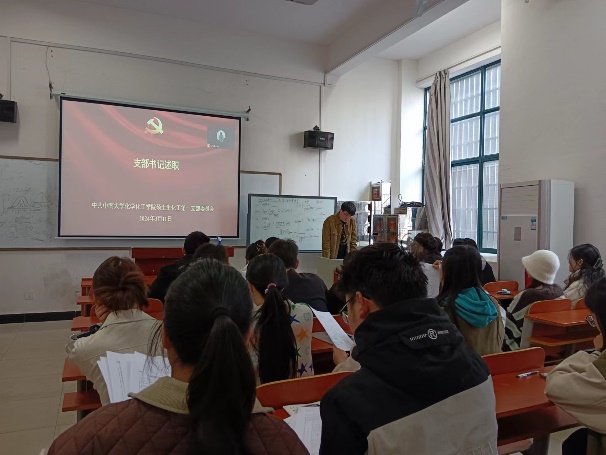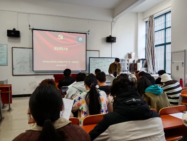 2024年3月11日下午,硕士生化工第一党支部在化学楼123教室开展了三月份主题党日活动,会议由支部书记朱林同志主持。