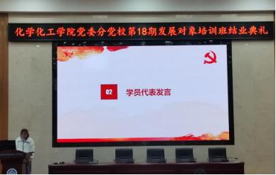 随后,优秀学员代表陆怡帆发言。陆怡帆对参加培训班的收获与感悟进行了总结,对党组织的培养和教育表达了感谢,并表示要始终牢记入党初心,眼光长远,意志坚定,经得起时间的考验和困难的打磨,为党的最高理想和最终目标—实现共产主义而奋斗终生。