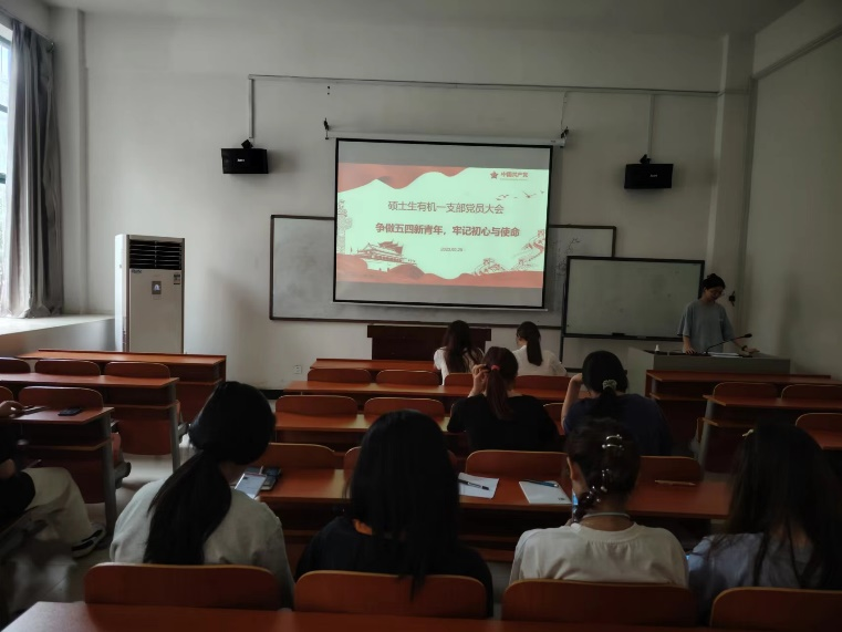 2024年5月29日上午11:00,硕士生有机第一党支部在新校区化学楼125教室开展召开党员大会,会议内容如下:学习习近平总书记近期重要讲话精神;高质量推进党纪学习教育;认真学好用好第六批全国干部学习培训教材;认真学习贯彻中共中央办公厅、国务院办公厅印发的《关于健全新时代志愿服务体系的意见;认真学习贯彻《中国共产党党员网络行为规定》;预备党员接收、预备党员转正工作。支部组织委员朱红艳同志主持会议,支部全体正式党员及预备党员参会。