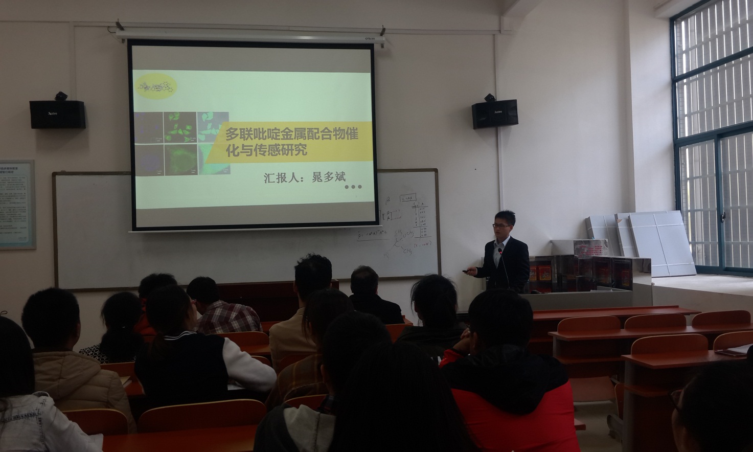 2017年4月13日下午15:00,新校区化学楼报123室举办了主题为“多联吡啶金属配合物催化与传感研究”的学术讲座,主讲人是大连理工大学石油与化学工程公司晁多斌博士,本次报告会由伟德victor1946官网登录易小艺教授主持。
