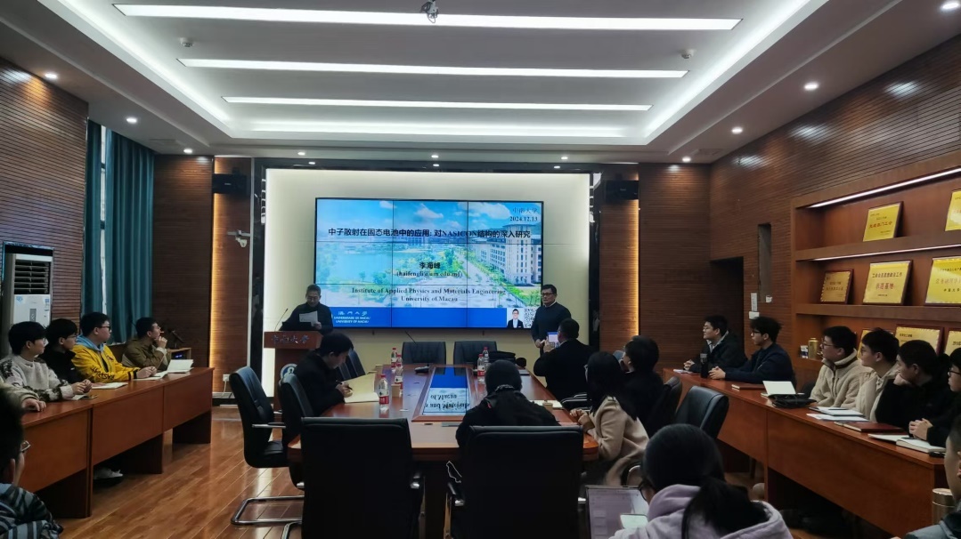 2024年12月13日上午10:00于伟德victor1946官网新校区化学楼129报告厅邀请了澳门大学李海峰教授、许冠南教授、李清教授、澳门城市大学孙晶教授分别分享了题为“中子散射在固态电池中的应用:对NASICON结构的深入研究”“钾离子电池的研究进展:材料设计与固体电解质界面分析”“构建可靠的水系锌电池”“机器学习在电池材料设计中的应用:机遇、挑战和方法”的学术讲座。报告会由纪效波教授主持,来自全院相关学科的师生们聆听了各位老师的精彩讲座。