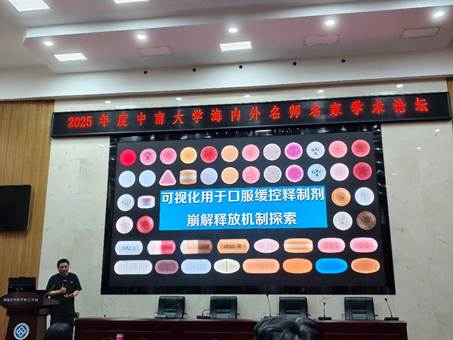 四川大学邓黎教授的报告题目为“可视化用于口服缓控释制剂崩解释放机制探索”,介绍了固体制剂崩解释药的表征方法和多维度体现固体制剂设计原理及关键释药特征,以盐酸哌甲酯缓释片和帕利哌酮缓释片等为案例,可视化展示了其崩解释药的过程,并由此得出哪种药剂效果更好的结论。
