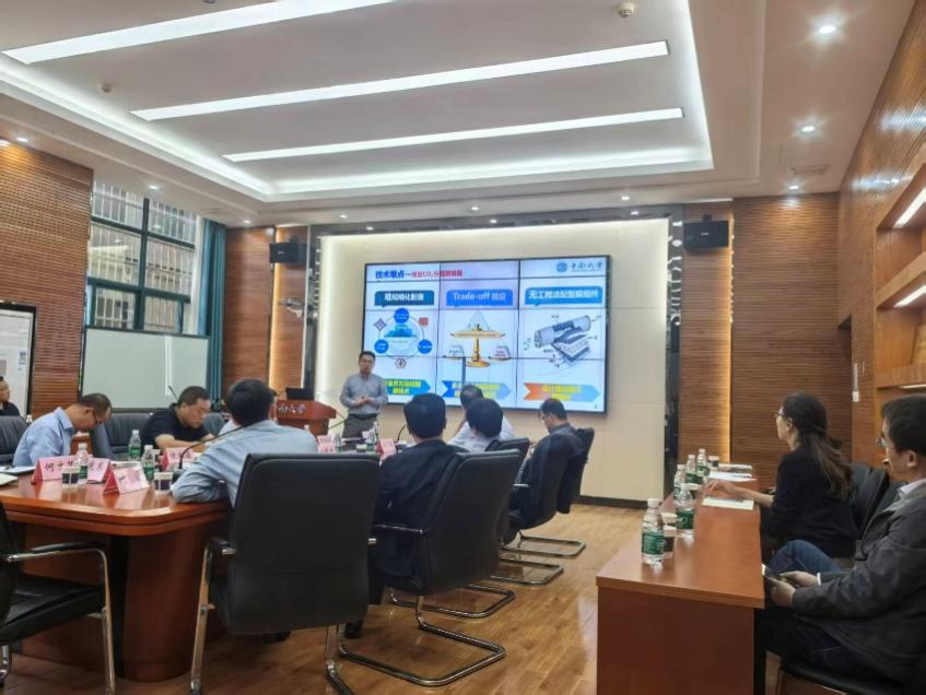 唐俊涛的报告题目是“碳捕集用多孔膜材料及器件”。他主要从团队基本情况、研究方向与成果、产业与应用实例三个方面进行汇报。重点介绍了他们的主要研究思路、结合“双碳”目标的项目背景、高效CO2分离膜难题等技术难点。最后,展示了相关成果,如分离性能突破Robeson上限、膜衬底材料制备关键技术等成果。