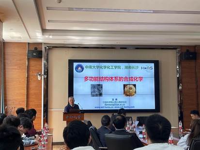 王丹研究员详细介绍了多壳层中空结构(HoMS)的普适合成新方法:次序模板法,并对其合成机理、物质浓度波宏观体现的新概念、HoMS的时空顺序新属性、石墨炔复合与掺杂体系对电荷传输与分布的调控、碳材料的定点和定量的氮掺杂进行了全面的阐述。报告结束后,在场师生表现出HoMS极大兴趣,纷纷与王丹研究员展开深入的互动交流。