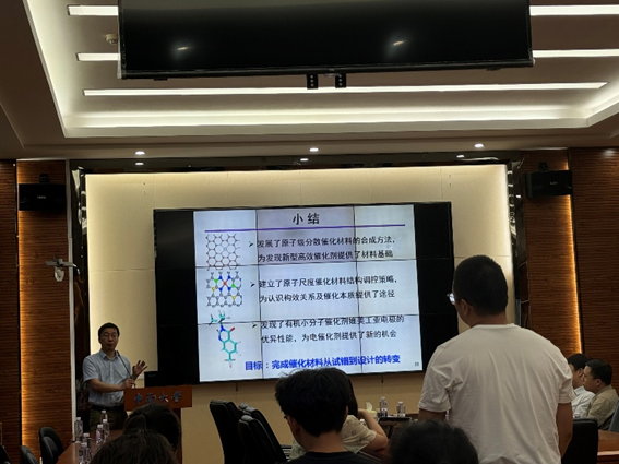 王定胜教授的分享是基于先进的合成技术和表征手段,从纳米晶、团簇和单原子等不同维度深入研究多相催化反应过程,实现了金属纳米晶、团簇、单原子材料的精准合成。同时,利用球差电镜、同步辐射等表征技术实现了对其精细结构的把握,阐明了金属单原子和团簇的表界面精细结构对催化反应的调控机制,其目标是完成催化材料从试错到设计的转变,为创制新型、高效和结构明确的负载型催化剂提供了方向。