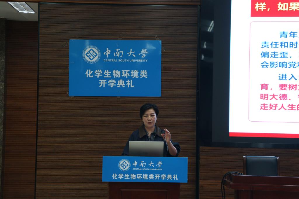 最后,滕晓雯老师诚挚寄语全体新生:“希望同学们从入学伊始就扣正、扣牢、扣好‘第一粒扣子’,不负青春、不负时代,努力成长为有理想、敢担当、能吃苦、肯奋斗的新时代中南人”。