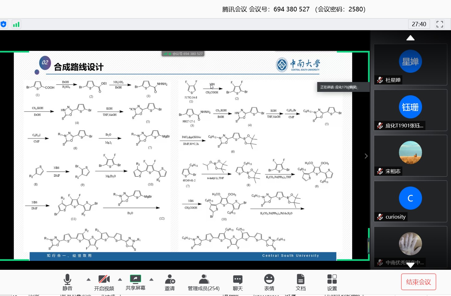 5月15日晚上,伟德victor1946官网2019年老员工创新创业年会伟德victor1946官网登录专场在腾讯会议平台上举行,本次年会旨在促进公司优秀创新创业项目间的经验交流和心得体会分享,切实让同学们感受公司浓厚的创新创业氛围,进一步激发了同学们创新创业的热情和积极性。伟德victor1946官网登录党委副书记刘有才老师、副经理宋相志老师、化工系周涛老师、无机系张寿春老师、学工办华绪雨老师担任点评嘉宾。