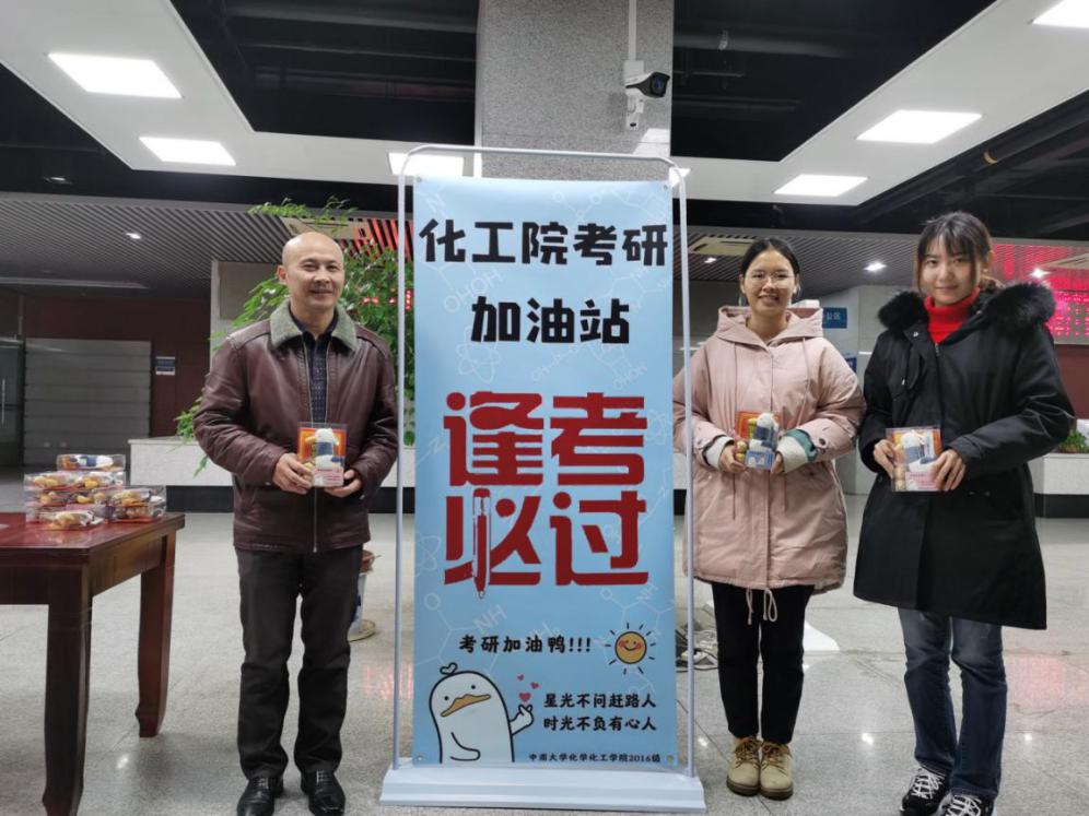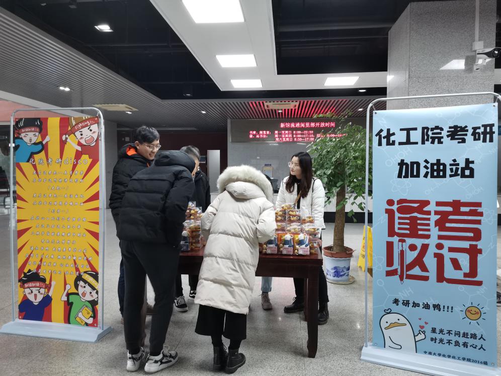 为了缓解考研同学们紧张心理,以更好的心态面对即将到来的研究生入学考试,12月19日中午,在辅导员范帆老师的带领下,2016级的同学们于图书馆一楼大厅设立了“化工院考研加油站”,给考研学子送出心意满满的“加油鸭”礼盒,为考研员工们加油助力。
