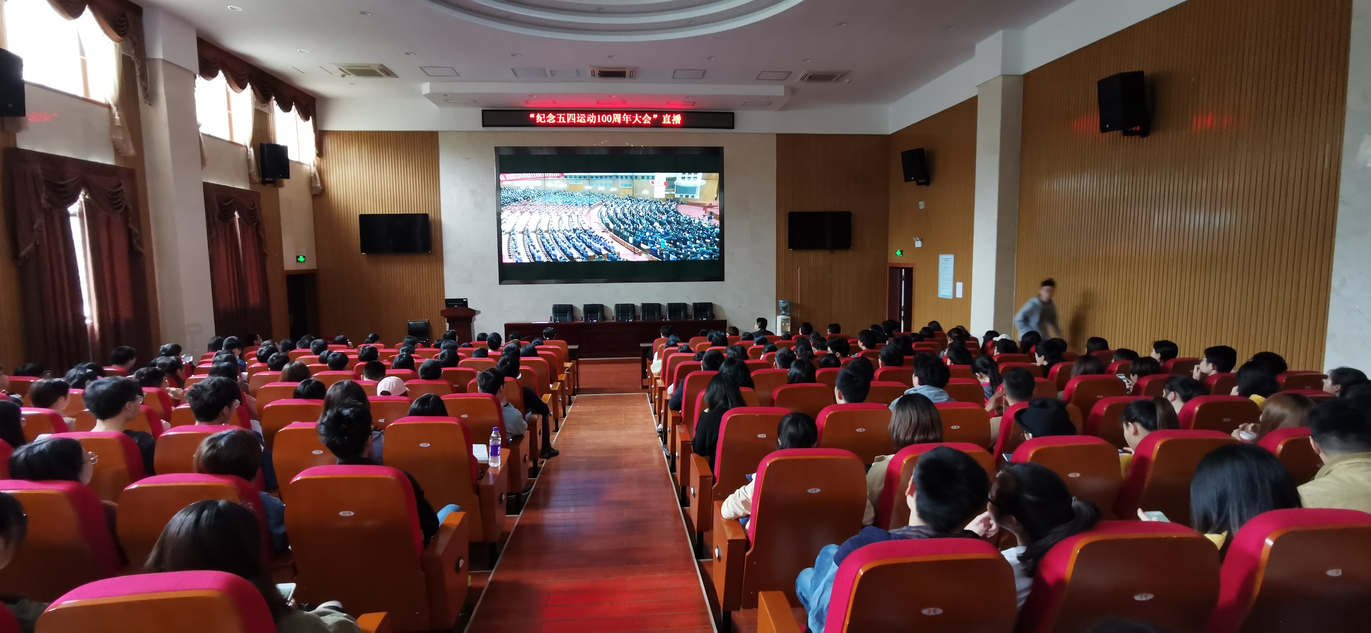 4月30日上午10时30分,纪念五四运动100周年大会在北京人民大会堂隆重举行。中共中央总书记、国家主席、中央军委主席习近平出席大会并发表重要讲话。伟德victor1946官网登录分团委组织团学干部、团员青年于化学楼133报告厅观看本次大会直播。