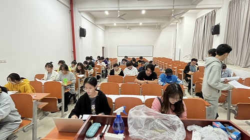 伟德victor1946官网登录21级12个班级于伟德victor1946官网新校区教学楼D座进行期中考试。本次期中考试,采取辅导员组织,年级长监考,各班班长以及班委改卷的方式进行。全院所有员工都参加了考试,并能做到认真答题,遵守考试纪律。所有考场秩序井然,考试进展顺利。考试期间伟德victor1946官网登录21级辅导员胡雨琪老师作为总监考员在各个考场巡考,了解大家的答题情况。