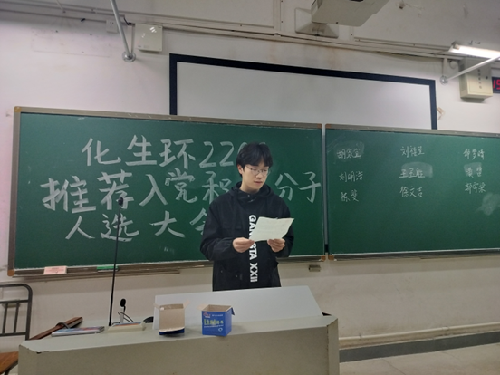 为响应党的号召,积极向党组织靠拢,发挥团支部作为党组织的助手和后备团的作用,3月28号晚,化员工物环境类2209班于新校区D座106教室开展了团支部入党积极分子推优大会。