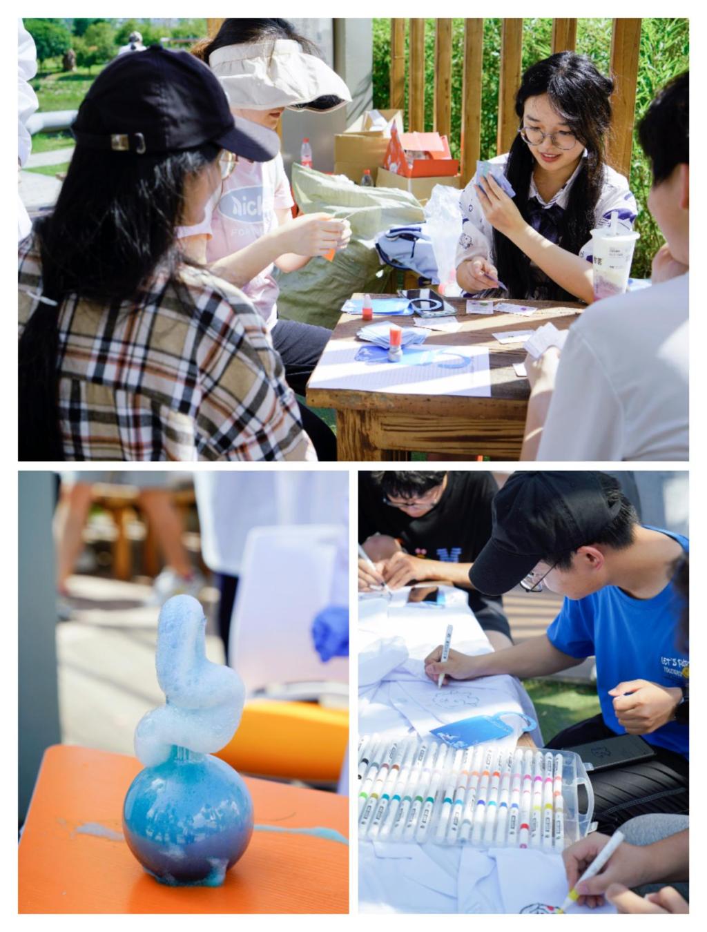 活动开始,同学们在问渠长廊入口处领取集章卡,开启一日魔法师之旅,第一站的旅程包括“大象牙膏”“出神入化”“化个画儿”,同学们可以刺破气球,按照其中书写的配比制作五彩缤纷的大象牙膏,可以与朋友一起运用化学知识争夺化学扑克牌的擂主,也可以在实验服上挥洒画笔,创造“化师袍”。
