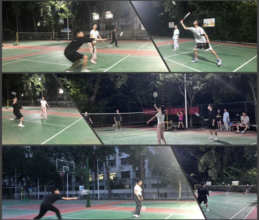 第一组于7月21日晚上18:30-20:00在沁阳高温氧化铝材料厂活动室举行羽毛球比赛。参与本次比赛的有侯红帅老师以及刘恋、曹俊杰等七位同学,由王福英、付雨欣两位同学担任裁判。第二组于7月24日19:00-20:30在郑州研究院羽毛球场举办,参赛人员共4组,每组两人,程新园老师和曹萌萌同学担当裁判,剩下的同学则担任啦啦队。