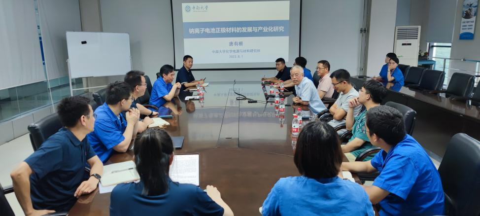 在新太行公司的第一会议室,唐有根老师作了题为“钠离子电池正极材料的发展与产业化研究”的报告。报告阐述了正极材料的设计策略、制备方法以及改善材料性能的关键科学问题。同时,也描述了从实验室研究到产业化应用的过程,分析目前产业化过程中面临的问题与挑战。报告展望了下一步钠离子电池正极材料研发的方向,以及钠离子电池的应用前景与发展潜力。总体来说,报告系统而全面地综述了钠离子电池正极材料的发展历程、现状及展望,值得我们认真学习。