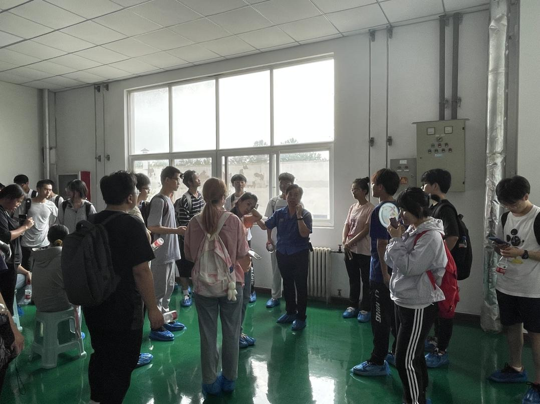 在简单介绍之后,总工宋二虎带着实习队参观了工厂的生产车间,并向实习队详细讲述了锂离子电池、铁镍电池等公司产品的生产工艺流程以及生产设备的操作方法等。