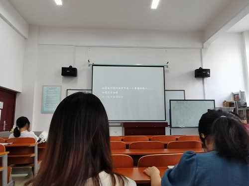 首先,班长郭慧萍上台发言:“今天是国庆放假前的最后一天,同学们在假期期间一定要注意安全,尤其是交通安全。导致交通事故的主要原因有:注意力不集中、骑飞车等。比如,同学们可能在走路或骑车时因和同学聊天而忽视交通情况。最近后湖小区就发生过一起汽车与电动车相撞的交通事故,这警示我们不应该在骑车或过马路时分心。”班长郭慧萍讲解后,给同学们播放了交通安全教育警示片。视频中由于主人公闯红灯、酒后驾驶等,造成了触目惊心、不可挽回的事故,十分具有教育意义。