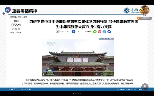 9月17日晚上17点,制药2102班在线上举行了一次围绕“学习习近平总书记在中共中央政治局第五次集体学习时的重要讲话精神”“老员工网络安全素养教育”“老员工安全知识学习”的主题班会。本次班会旨在让同学们积极学习党和国家的政策方针,树立网络安全意识,提高安全能力。会议由班长陈铭主持,班级全体成员参会。