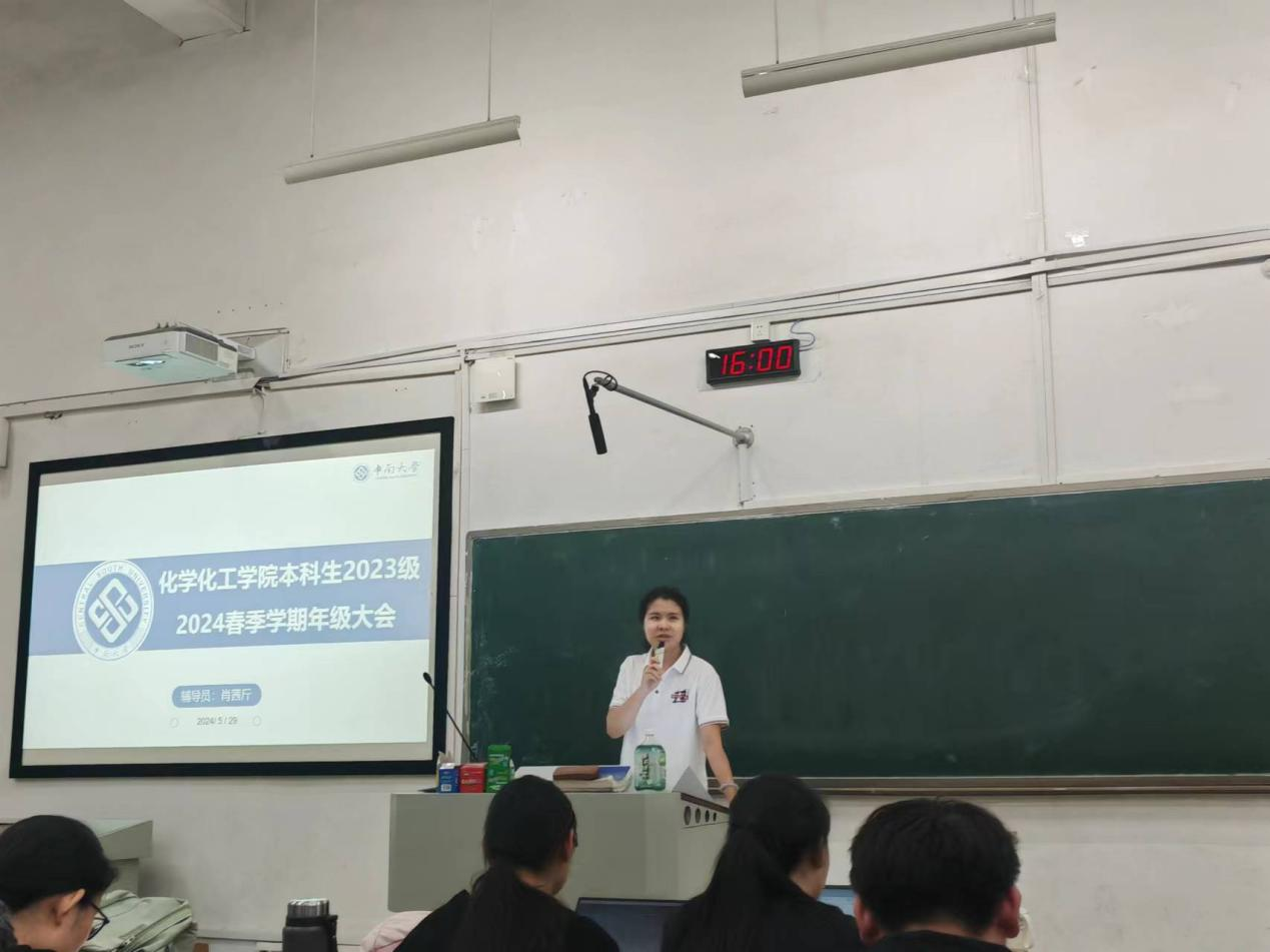 随后,肖茜斤老师针对同学们在学习生活中所面临的种种问题以及困惑,从学业分析、生涯规划、校纪校规教育、安全教育、校园生活等方面进行了解答。她重申了校纪校规、规范请假制度、诚信应考、寝室公约等规定,从学业成绩分析、学科竞赛、保研政策、生涯规划等诸多方面分享信息,帮助同学们更好地规划下一阶段的目标。