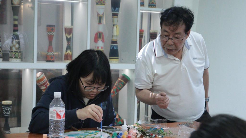 活动主持人潘霄首先向大家介绍团扇的历史和绘制方法,老师和同学们用画笔在扇面上绘制出各种图案,赋予了团扇这一古老艺术形式蓬勃的生命力。
