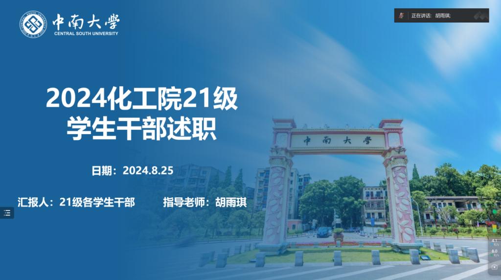 8月25日晚7:00,化学化工院21级员工干部述职会于线上顺利召开,21级辅导员胡雨琪出席本次活动,21级7位年级长、12位班长参加会议对大三下学期的工作进行述职。