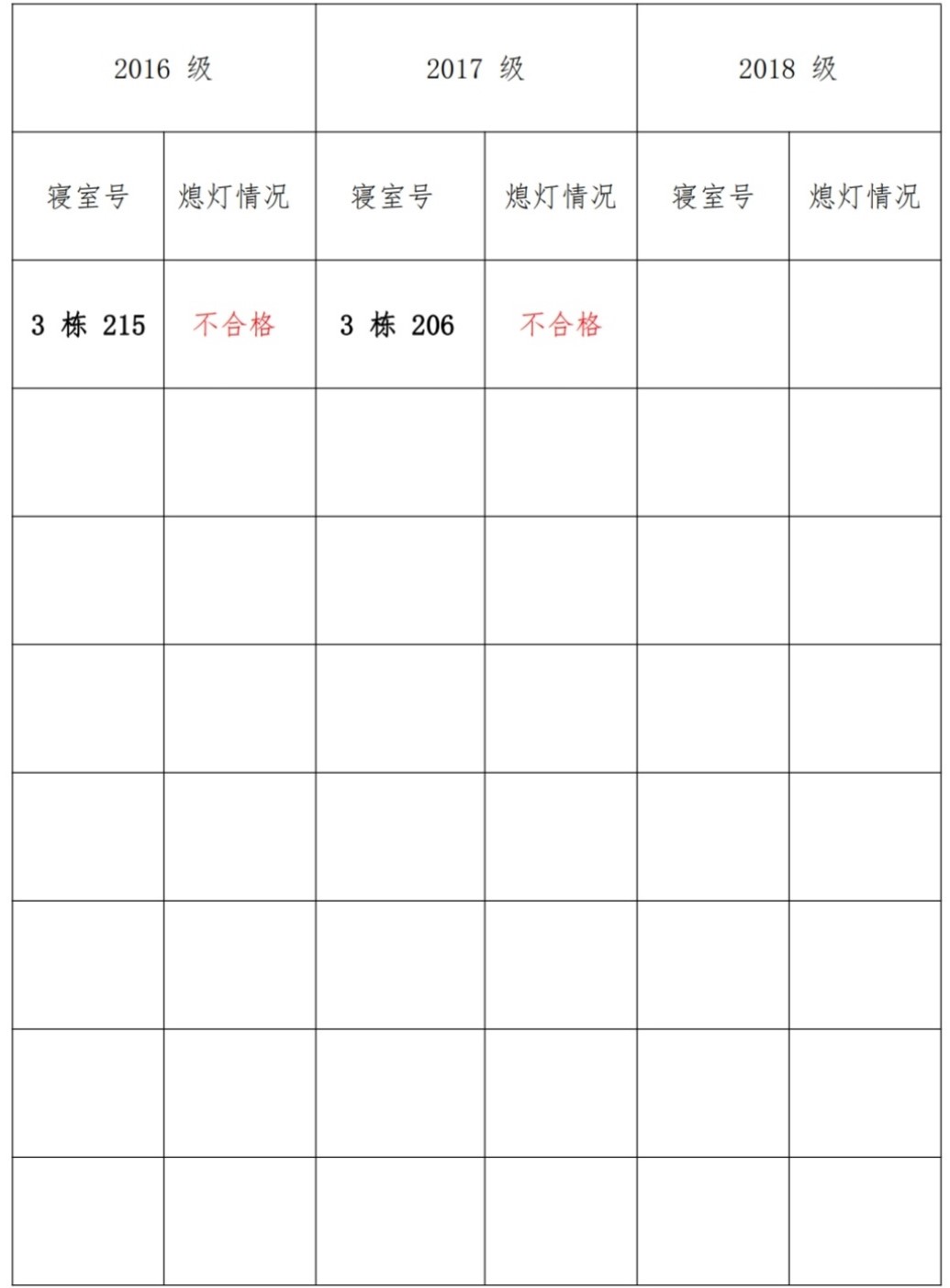 为改正各种不良现象和陋习,增强宿舍学习氛围,营造温馨家园氛围,伟德victor1946官网登录员工会生活部对三个年级所有寝室进行熄灯检查。本次熄灯情况通 报不合格寝室 2 间,具体情况如下: