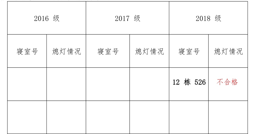 为改正各种不良现象和陋习,增强宿舍学习氛围,营造温馨家园氛围,伟德victor1946官网登录员工会生活部对三个年级所有寝室进行熄灯检查。 本次熄灯情况通报不合格寝室 1 间,具体情况如下: