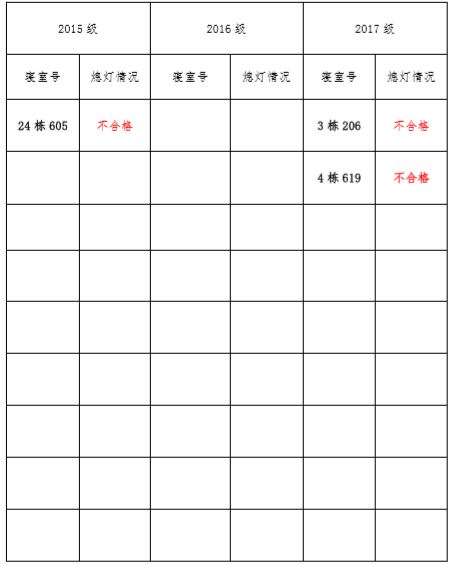 为改正各种不良现象和陋习,增强宿舍学习氛围,营造温馨家园氛围,伟德victor1946官网登录员工会生活部对三个年级所有寝室进行熄灯检查。 本次熄灯情况通报不合格寝室 3 间,具体情况如下: