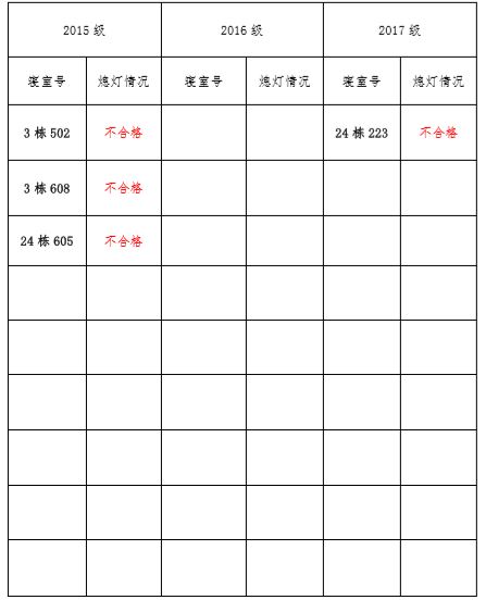 为改正各种不良现象和陋习,增强宿舍学习氛围,营造温馨家园氛围,伟德victor1946官网登录员工会生活部对三个年级所有寝室进行熄灯检查。 本次熄灯情况通报不合格寝室 4 间,具体情况如下:
