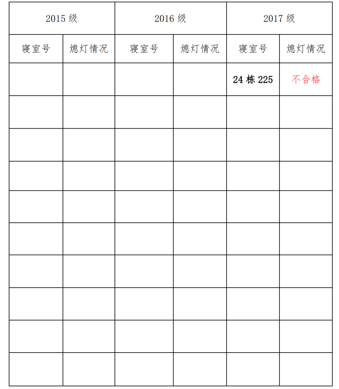 为改正各种不良现象和陋习,增强宿舍学习氛围,营造温馨家园氛围,伟德victor1946官网登录团委员工会生活权益服务部对三个年级所有寝室进行熄灯检查。本次熄灯情况通报不合格寝室1间,具体情况如下: