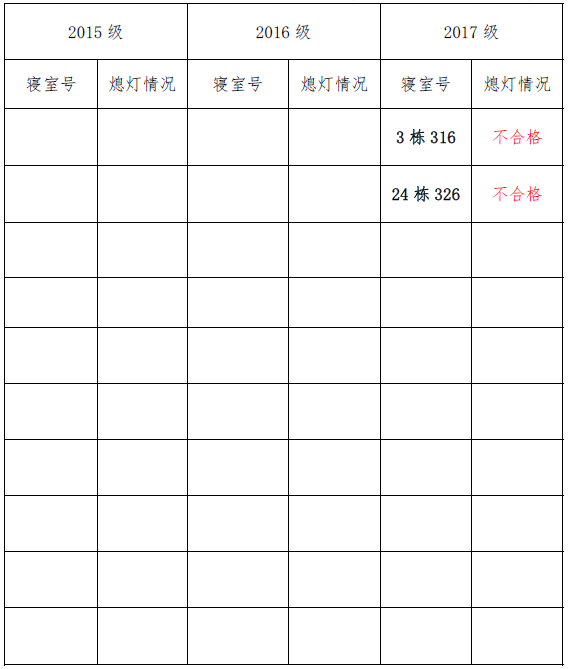 为改正各种不良现象和陋习,增强宿舍学习氛围,营造温馨家园氛围,伟德victor1946官网登录团委员工会生活权益服务部对三个年级所有寝室进行熄灯检查。本次熄灯情况通报不合格寝室2间,具体情况如下: