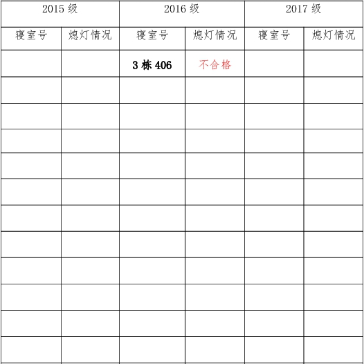 为改正各种不良现象和陋习,增强宿舍学习氛围,营造温馨家园氛围,伟德victor1946官网登录团委员工会生活权益服务部对三个年级所有寝室进行熄灯检查。本次熄灯情况通报不合格寝室1间,具体情况如下: