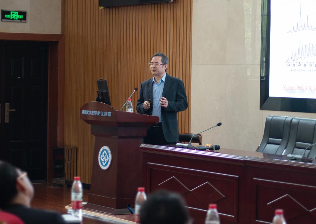 富勒烯是上个世纪最后15年的最重要发现之一,如今在能源催化、太阳能电池等多个领域发挥着重要作用。谢院士沿着富勒烯的表征、放大及应用的讲解思路向在场师生讲述他的课题组从无到有研究富勒烯的整个心路历程。为了解决富勒烯表征过程中遇到的技术瓶颈,他带领团队开发出灵活的“富勒烯手”——十吡咯基碗烯衍生物来实现富勒烯结构表征自由。他带领团队通过不断钻研、重复试验,充分发扬科学探索精神,首次提出富勒烯与铜之间存在可逆的电子转移机制,从而打通了煤制二乙醇常压催化加氢的卡点。谢院士在报告中还介绍了其团队正在重点发展燃烧合成技术,以实现富勒烯的高效率、规模化、低成本合成,进而降低富勒烯铜基催化的门槛,推动富勒烯产业化应用。他坚信,未来富勒烯的应用领域将继续得以开拓、产业化前景更加广阔!