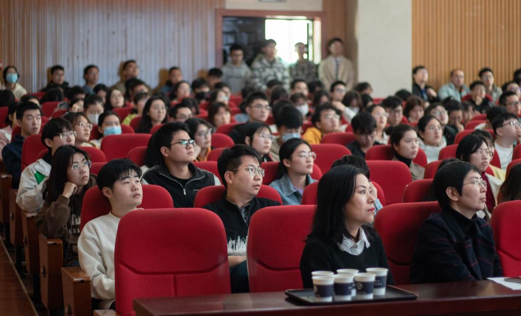 在互动交流环节,在场师生踊跃提问,就富勒烯在催化领域的应用前景、富勒烯-金属离子催化中心的选择以及富勒烯新材料的构建等问题与谢院士进行了深入交流。
