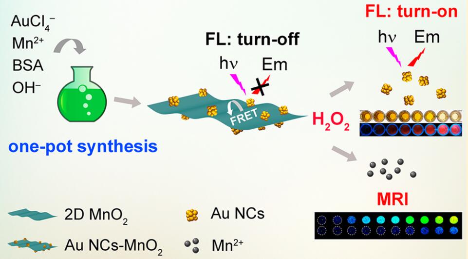 金纳簇修饰的二维二氧化锰纳米片用于荧光/磁共振双模态过氧化氢检测