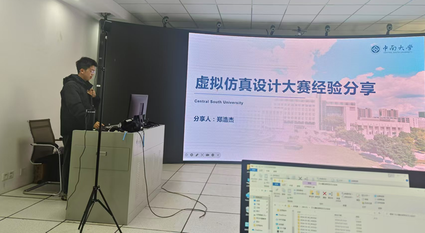 李中北老师邀请去年获得了湖南省虚拟仿真大赛一等奖的郑浩杰同学分享了他的宝贵经验。他首先介绍了参加比赛的动机和收获。然后鼓励同学们充分利用寒假时间自学相关软件,并强调团队内的分工协作很重要。最后,他还鼓励各位同学积极报名,迈出尝试的第一步才可能收获成功,竞赛是一个漫长的过程,一旦决定参与,就要坚定地向前推进,并且投入全部的努力。