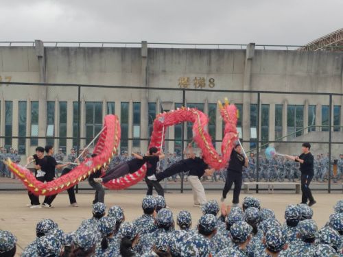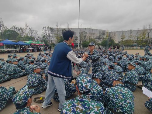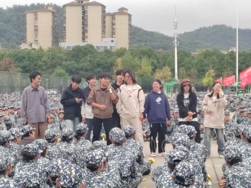在热烈的氛围中,学长学姐合唱《明天会更好》,将活动推向高潮。歌声与欢笑中,新生与老生之间的距离悄然拉近。活动尾声,全体人员在教官组织下合影,定格这一温暖时刻。整场慰问节奏紧凑、内容丰富,历时约一小时,为刻苦训练的新生注入了新的活力。