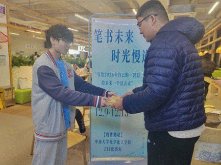 活动进行中,心助会成员根据工作安排和要求统计了各班级的参与人数,在二食堂一楼集中派发了2025年 “时光慢递”信封,同时联系班级负责人前来领取来自2024年同期活动的心灵信件。领取信封后,同学们围绕“致未来的自己”,纷纷提笔,将当下的憧憬、目标、困惑以及鼓励通过笔端跃然纸上。在一笔一划中,同学们不仅重温了书信载情的传统魅力,更在与自我对话的过程中获得了内心的宁静。当整理分装后的信件被郑重地放入了“时光慢递信”箱,它们将暂时沉寂在“化语屋”特色成长辅导室中,静候未来某个时日再次开启跨越时间的对话。至此,本次“时光慢递”旅程暂告一段落。