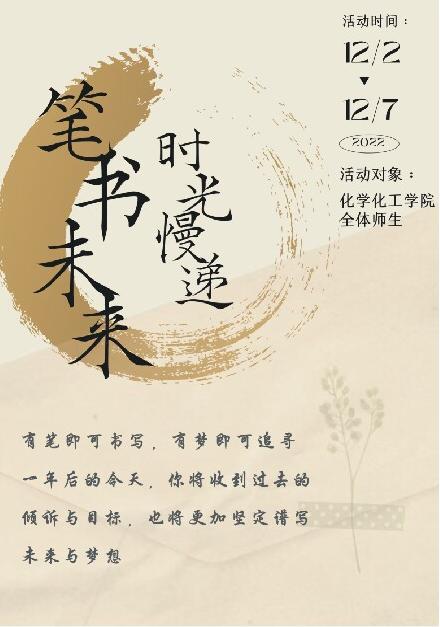 在校园中记录点滴,于白发时嘴角带笑。本次“笔书未来”时光慢递活动顺利举行,同学们都将认真书写这封寄给未来的信,相信大家在之后的生活中一定能鼓足信心和勇气,大步走向自己期盼的美好未来。