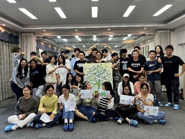 团体辅导活动通过室内团体辅导和室外素质拓展两种形式进行。室内团体辅导活动主要在毓秀楼229活动室开展,欢快的“二八二五六、金龙拍拍操”等热身环节拉开序幕,让大家彼此熟悉,相互靠近;“姓名接龙”让同学们了解彼此,打开心扉;“能量传递”在竞技中带来欢乐,考验同学们的配合与协作,让大家充分融入,提升默契度;“我的一天”以绘画的形式将自己最开心和最难过的时刻跃然纸上,互相分享喜怒哀乐,拉近彼此的距离;“许愿树”上写下了每个同学未来的期许,将梦想和希望放飞,在文字的勾勒下有了具体的形状。