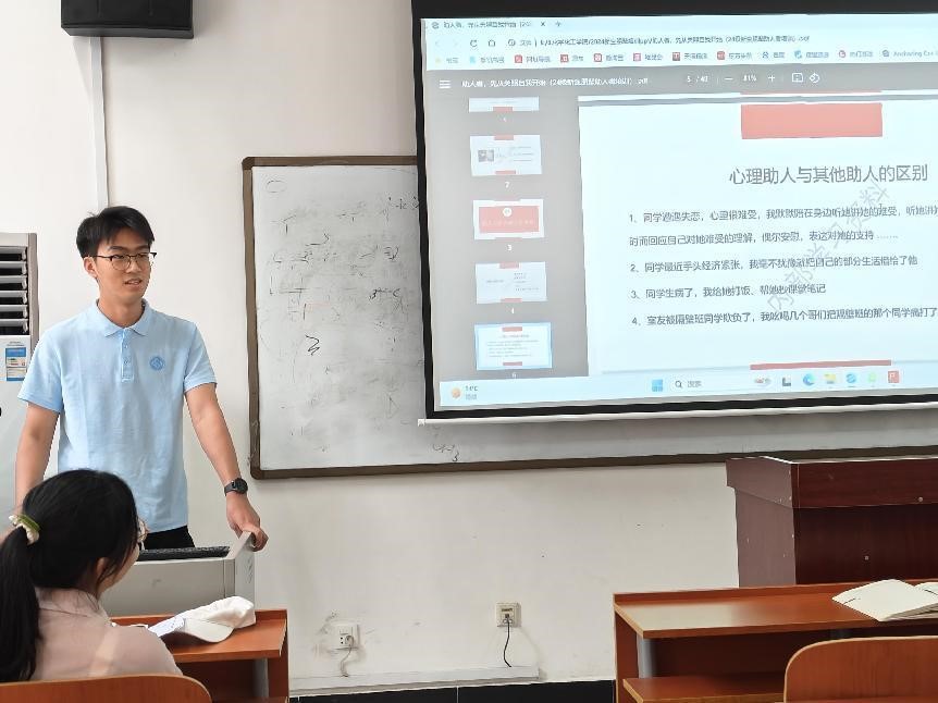 为帮助公司朋辈心理互助成员了解自身职责,提高助人技能,伟德victor1946官网登录于2024年9月28日14:30在新校区化学楼124举行了以“老员工活的适应与转变”为主题的案例分析会。本次案例分析会由培训部干事张庭主持,2023级本科生辅导员肖茜斤,2024级本科生辅导员文璋以及2023级、2024级全体本科生心理委员参与了此次案例分析会。
