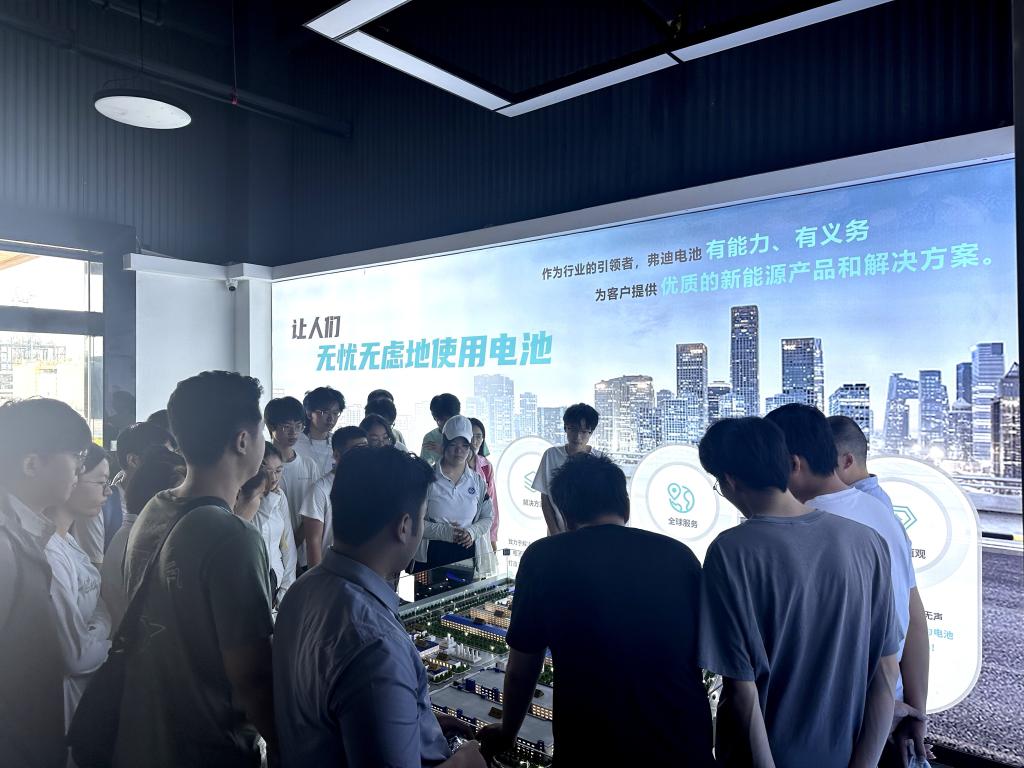 在弗迪公司人资部颜总的介绍下,师生们了解了长沙比亚迪弗迪电池-动力电池工厂的整体布局、工厂简介,并且参观了实验室车间、文化长廊、装配车间等,通过与工厂现场工程师及技术人员的充分沟通研讨,深入洞察新能源电池行业尖端技术走向与市场最新动态。陈总强调,比亚迪始终秉持"心无旁骛搞创造,踏踏实实搞创新"的发展理念,这一求真务实、专注创新的企业精神令在场同学深受启发,获益良多。